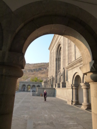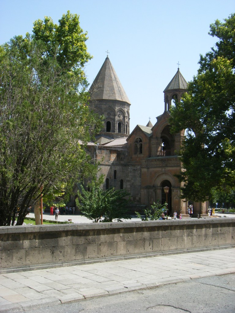 In Edjmiaçin wird viel gebaut, man ist schon weit fortgeschritten auf dem Weg zum armenischen Vatikan. Die Grünflächen ringsum sind weniger geworden; jene, in der wir seinerzeit zu einer Tasse Kaffee eingeladen wurden, gibt es nicht mehr. Doch die neuen Kirchen und Kapellen sind geschmackssicherer und auch armenischer als die, die uns damals ins Auge fielen.