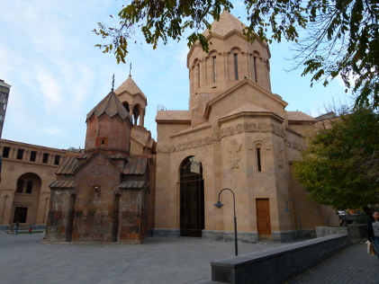 In Armenien hat es eine Russifizierung nie gegeben, die gregorianische Kirche blieb immer untrennbar mit dem armenischen Volk verbunden. Natürlich gibt es hier keine Ikonostasetten wie in georgischen Taxis (Bilderverehrung ist hier ja unbekannt); doch auch hier kann man sich, wenn der Fahrer sich bekreuzigt, umsehen, wo in der Umgebung die Kirche ist.